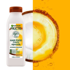 Acondicionador Fructis Hairfood con coco para pelo dañado y con 98% de Ingredientes de origen natural.