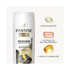 ¿Tu pelo necesita una reparación profunda? El Acondicionador Pantene Pro-V Miracles Revitalización repara el daño del pelo tratado químicamente desde el primer uso. Su nueva fórmula con Antioxidante, Extracto de Frambuesa y Pro-Vitamina B5 funciona como un suplemento que penetra profundamente en tu pelo ayudando a reparar e hidratar desde la raíz incluso después de tratamientos químicos.