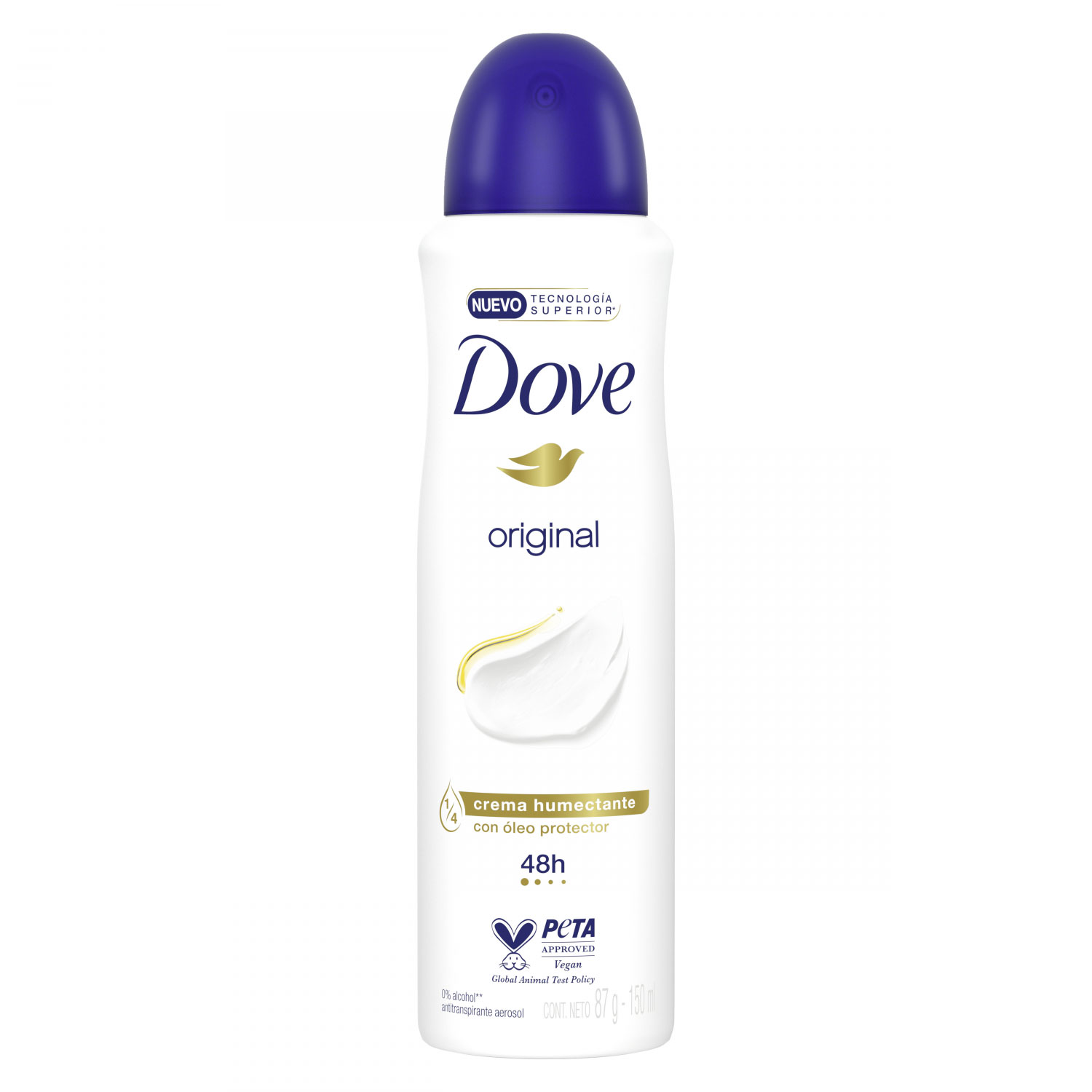 Sin importar lo que hagas, un antitranspirante confiable te ayudará a sentirte más segura siempre. Hecho con nuestro nuevo activo antitranspirante, el desodorante antitranspirante en aerosol Dove Original te protege por hasta 48 horas. La protección antitranspirante y el cuidado de las axilas se combinan con este aerosol suave para tu piel.