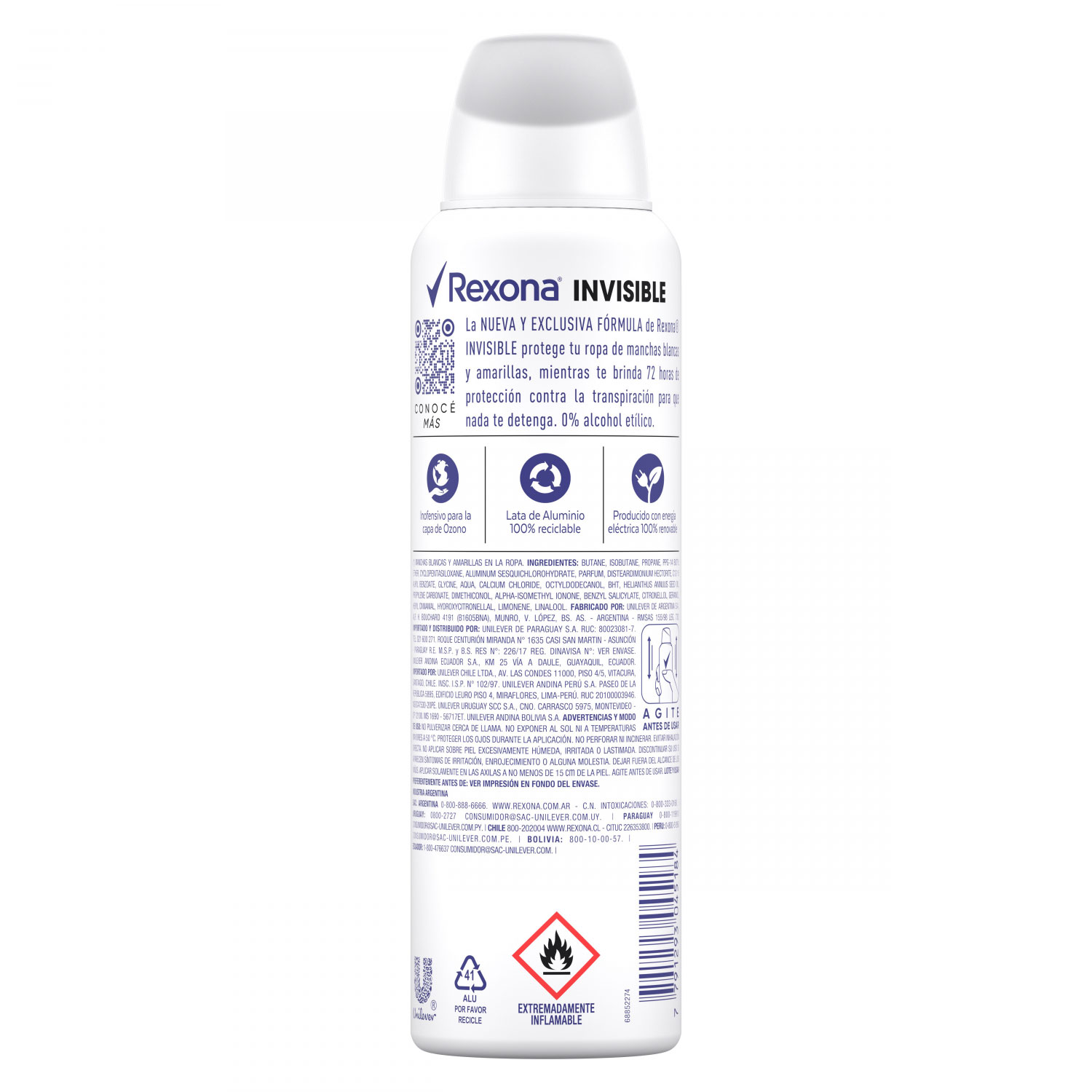 – Antitranspirante Rexona 0% de alcohol etílico y dermatológicamente testeado.