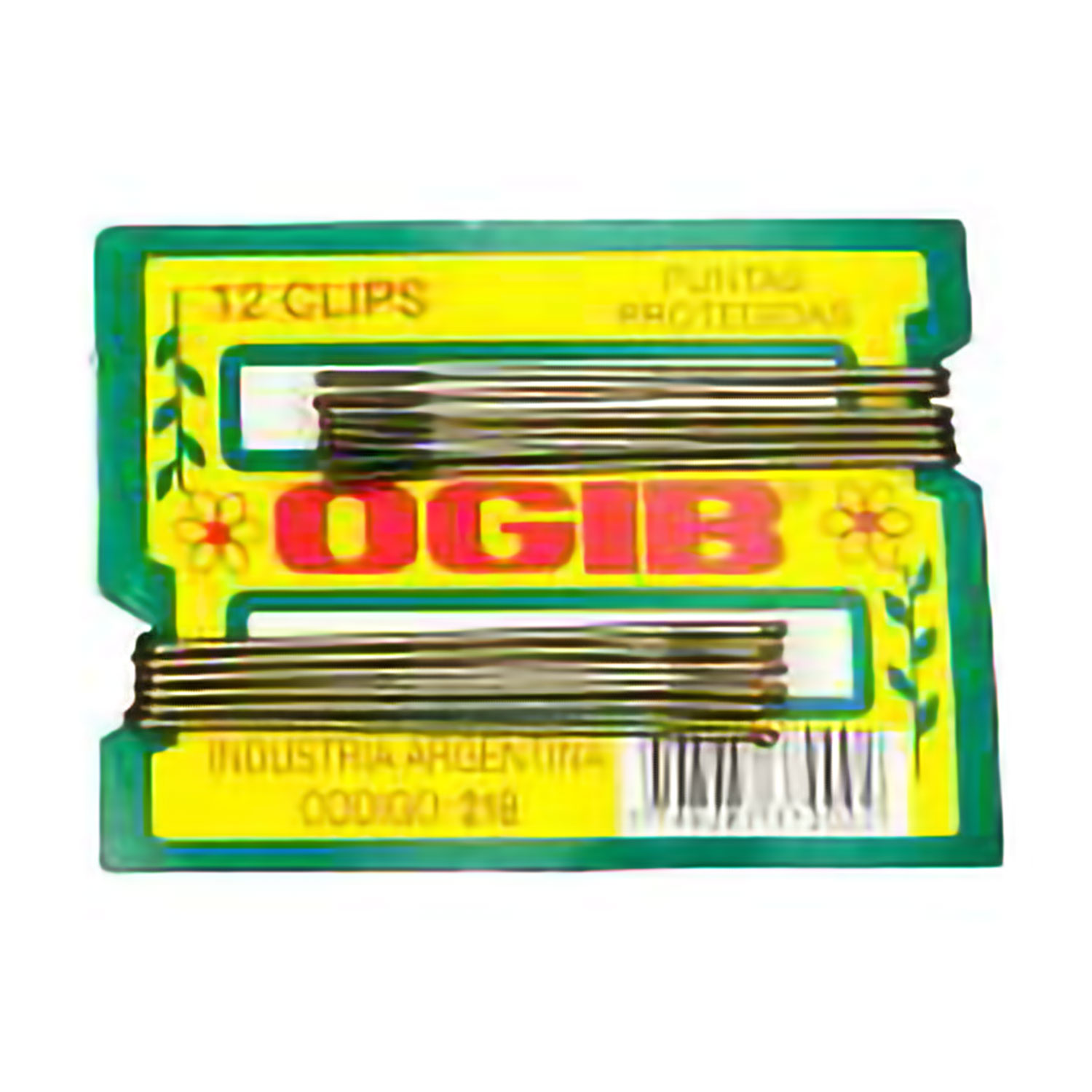 Clips invisibles Ogib tamaño grande, pack por 12 cartoncitos con 12 unidades cada uno. Están fabricados en metal laminado y templado con puntas redondeadas y engomadas para evitar dañar el cabello.