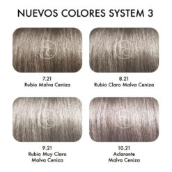 En cabello virgen, System 3 rebaja 2 ó 3 tonos el color. Es y actúa como tintura directa.