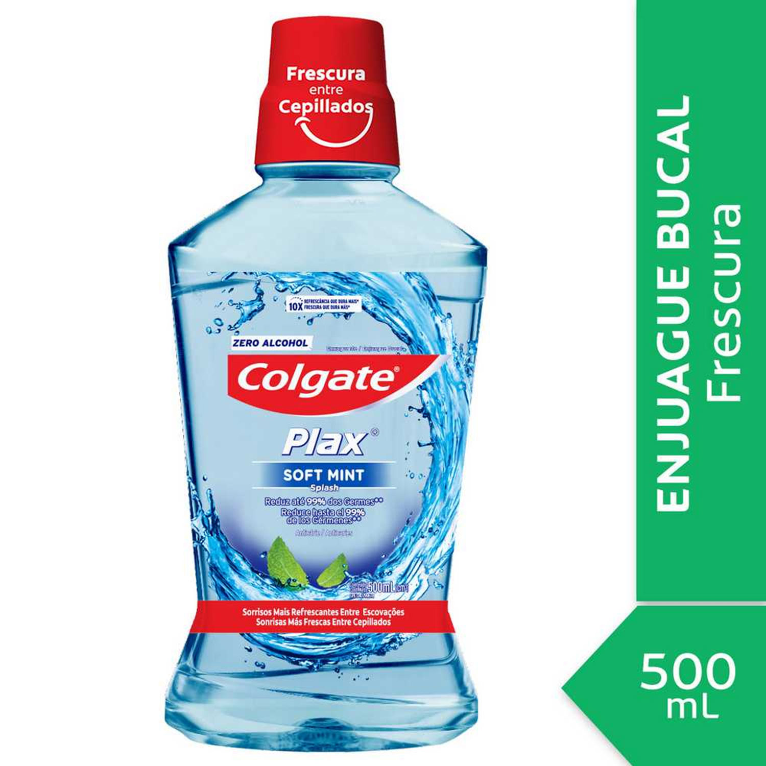 El enjuague bucal Colgate Plax Soft Mint no contiene alcohol y ofrece frescura que dura 10 veces más*.