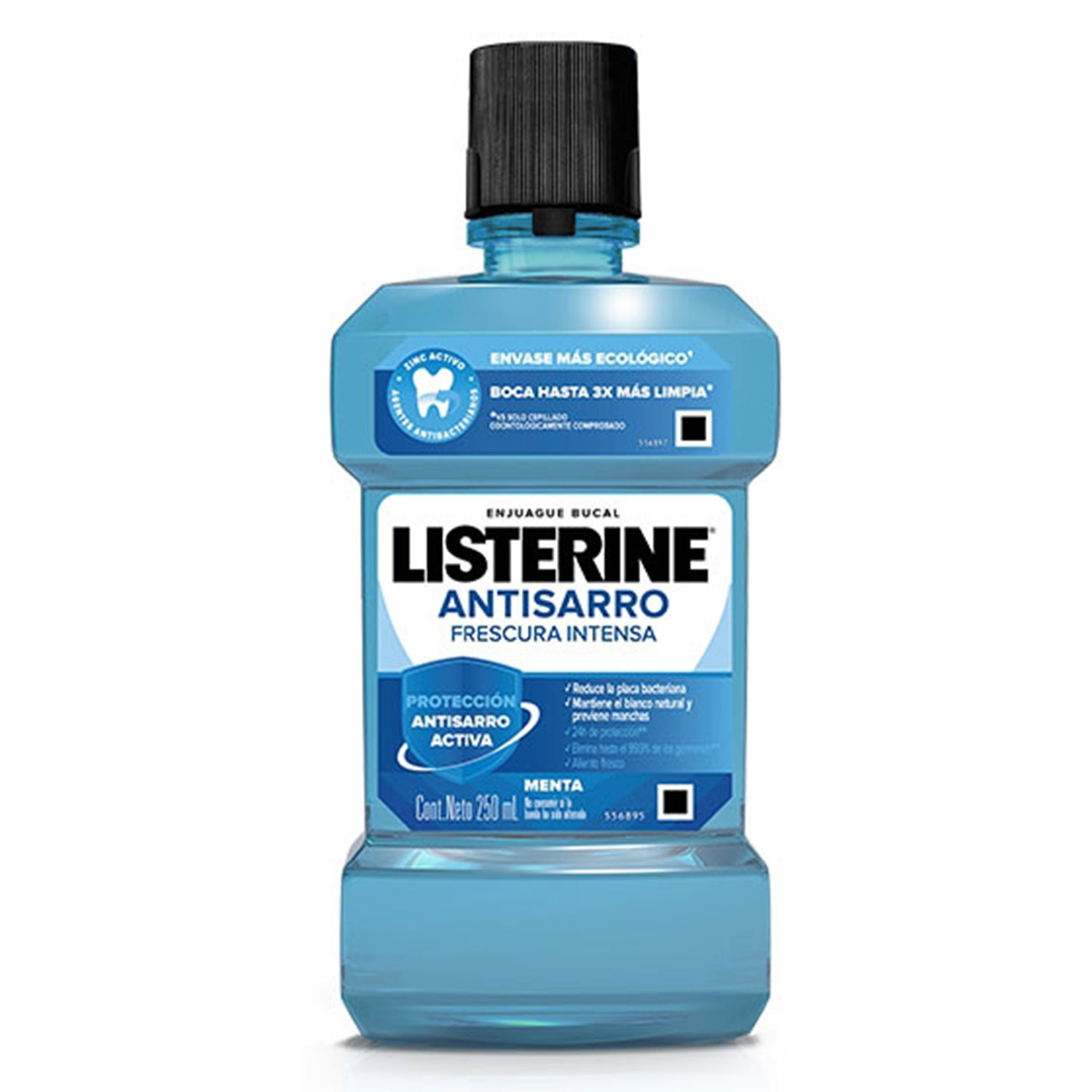LISTERINE® ANTISARRO Frescura Intensa tiene una fórmula exclusiva con agentes antibacterianos y Zinc activo para una boca hasta 3 veces más limpia