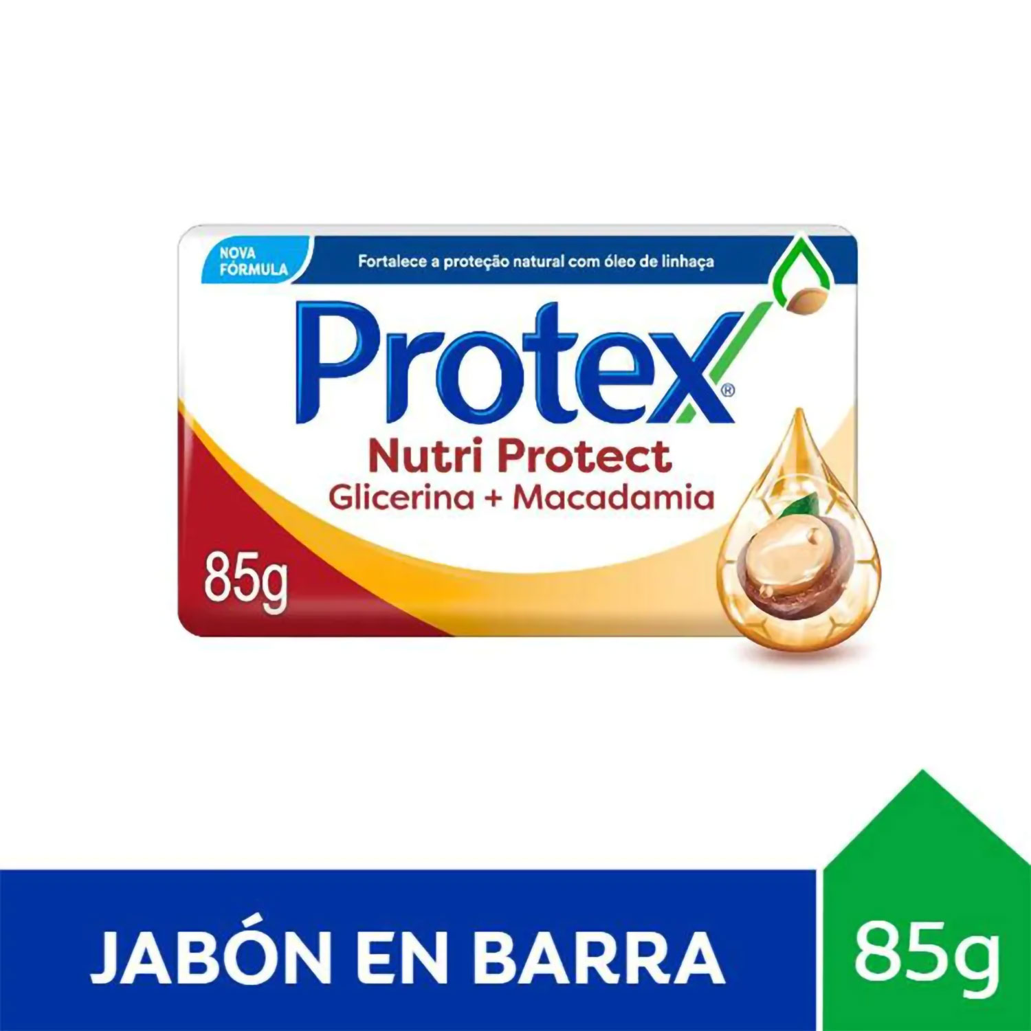Jabón de Tocador Protex Nutriprotect Macadamia, nueva formula con aceite de linaza, sensación hidratante, protección contra bacterias.
