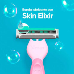 El rastrillo para afeitar desechable Gillette Venus Suave Sensitive cuenta con una banda lubricante con tecnología Skin Elixir para facilitar el desplazamiento y ayudarte a conseguir una depilación suave con menos irritación (vs. Prestobarba2), ideal para piel sensible como la tuya. Su cabeza es flexible para un buen deslizamiento que seguirá tus curvas, además, sus tres hojas te brindarán una depilada al ras para obtener suavidad por más tiempo.