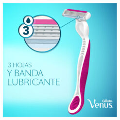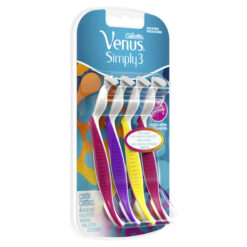 La máquina de afeitar descartable Simply Venus™ 3 tienen un cabezal móvil de tres filos que se ajusta a tus curvas para una depilación suave. Revelá la diosa en vos.