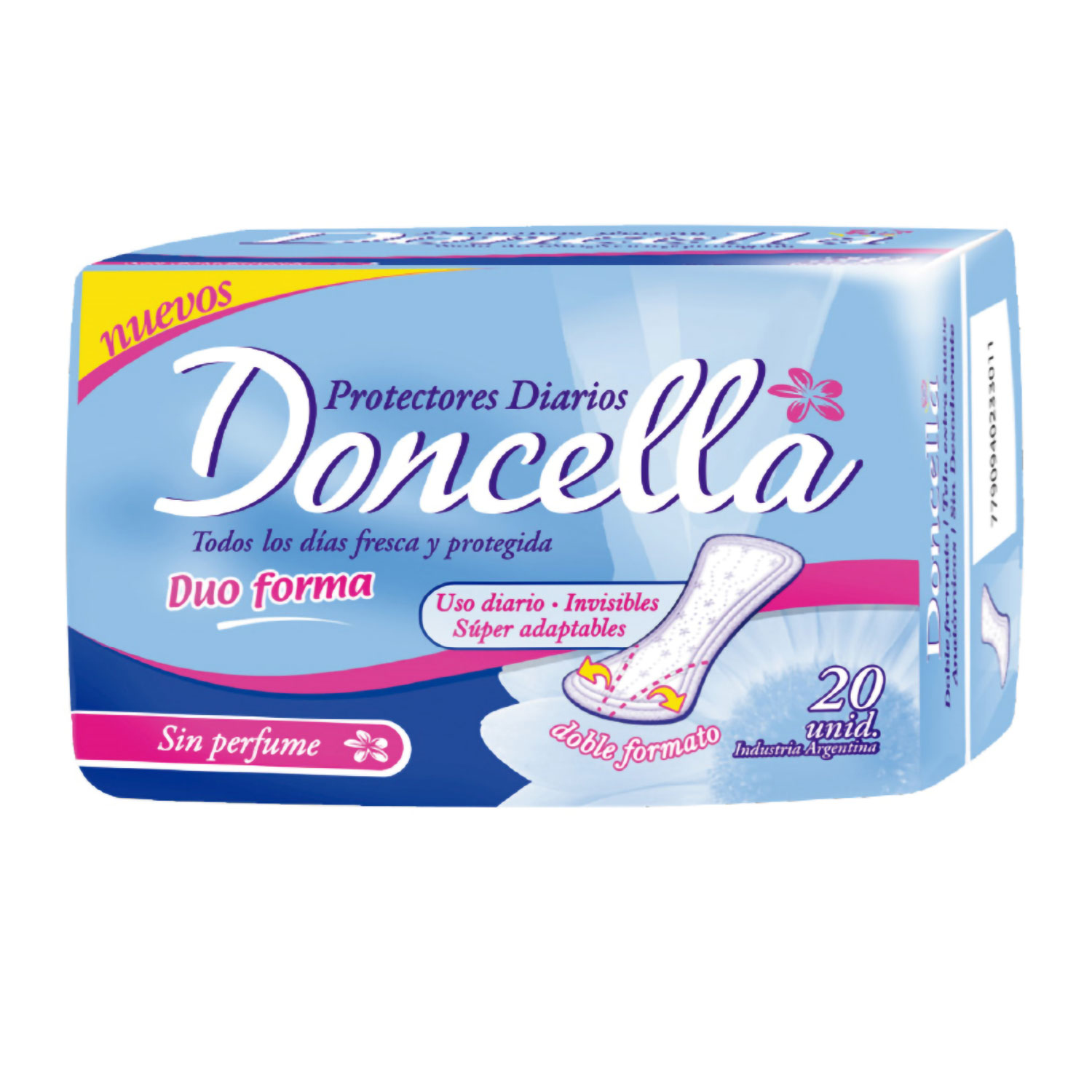 Este pack de Doncella Protector Diario Duo Forma Sin Deo viene con 20 unidades diseñadas para ofrecerte una protección discreta y confortable día tras día.