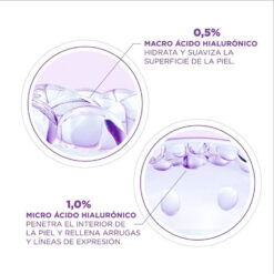 Serum rellenador con 1,5% de acido hialuronico puro. La mas alta concentracion de Acido hialuronico logrando -40% de lineas finas en 4 semanas.