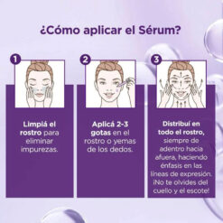 El Serum de Revitalift Acido hialuronico es un producto complementario a la rutina diaria. Tiene una concentracion de 1,5% de Acido Hialuronico Puro donde -40% de lineas de expresion visiblemente son reducidas en 4 semanas. Al aplicar el serum la piel se sentira hidratada, elsatica y fresca. En la semana 1, la piel luce radiante, se siente rellenada y firme. En la semana 2, las lineas de expresion se reducen (-19%) y las arrugas se reducen (-14%). Finalmente, en la cuarta semana las lineas de expresion se reducen (-40%) y las arrugasse reducen (-31%). Se recomienda utilizar el Serum cada mañana y noche, aplicando 2-3 gotas en el rostro y cuello, evitando el area de los ojos. Para mejores resultados, usa el resto de la gama Revitalift Acido hialuronico.