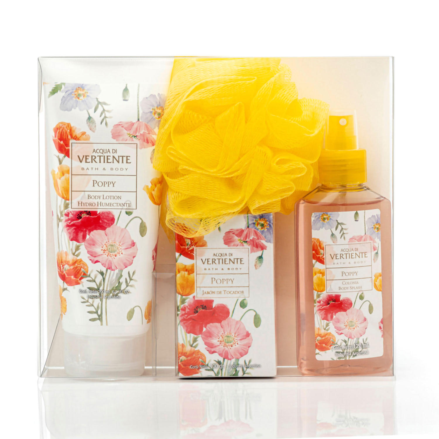 Set Body Lotion + Body Splash + Jabon + Esponja Acqua Di Vertiente Bath And Body Poppy X 1 U