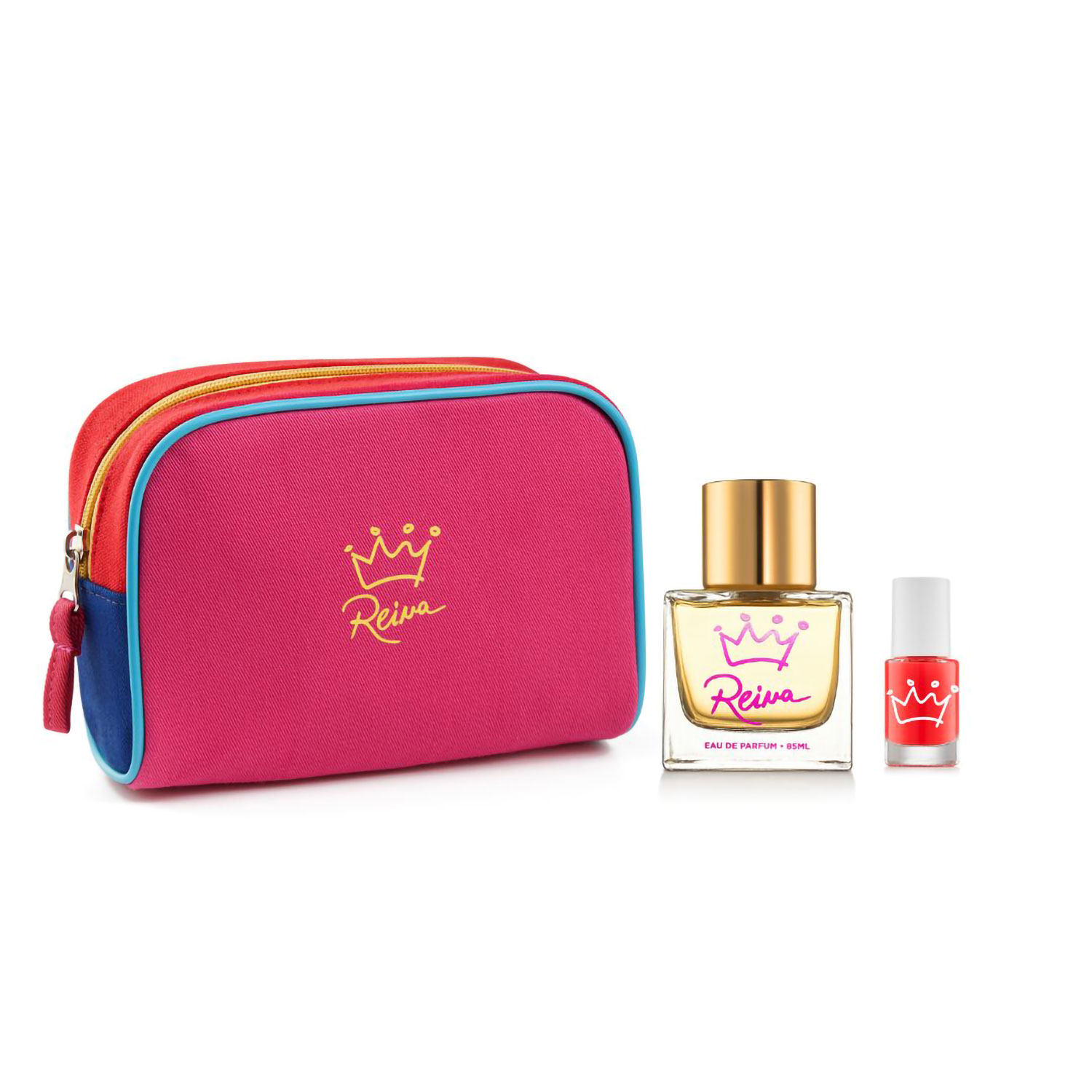 El esmalte complementa el set, añadiendo un toque de belleza y estilo. El pouch, además de ser práctico, es un accesorio chic que permite llevar todo con comodidad.