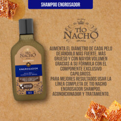 Shampoo Tío Nacho Engrosador, con una combinación de Jalea Real y Capilgross para pelo con más volumen, fuerte y grueso. [ ENGROSADOR ]