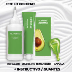 Tintura permanente con 100% cobertura de canas y hasta 8 semanas de duración. Una formula superior con color mas vibrante y duradero. Enriquecida con 4 aceites: Palta, Soja, Oliva y Nuez.